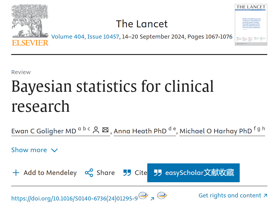 Goligher, E. C., Heath, A., & Harhay, M. O. (2024). Bayesian statistics for clinical research. The Lancet, 404(10457), 1067-1076.